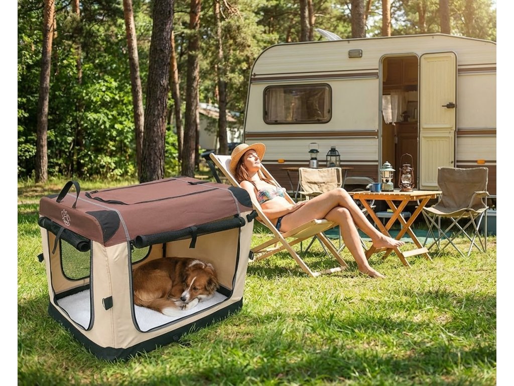 Vzdušná skládací látková bouda - přepravní box do auta nebo odpočinek pro domácí ležení, pohodlí během kynologické akce, dovolené atd.