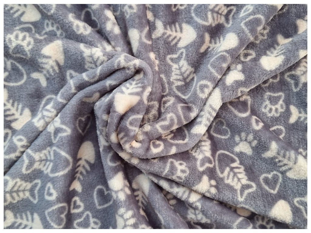 Plyšová mäkká deka sivá - vzor kosť a ryba