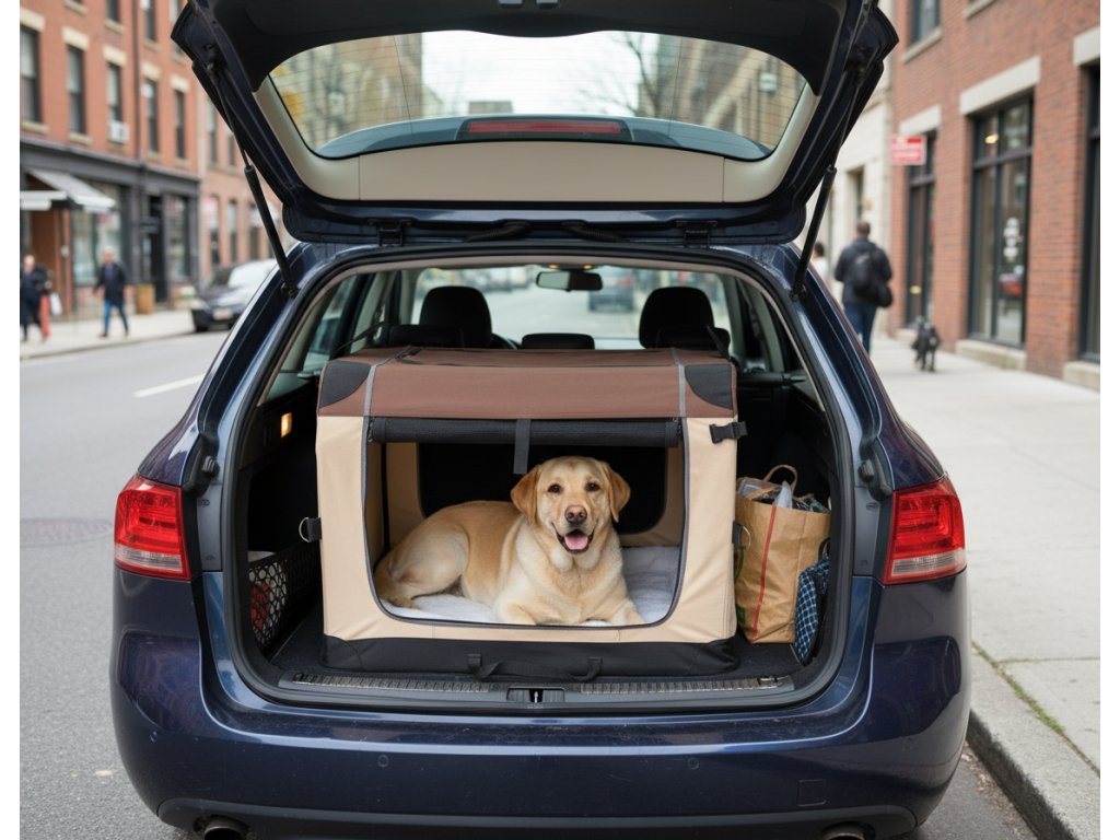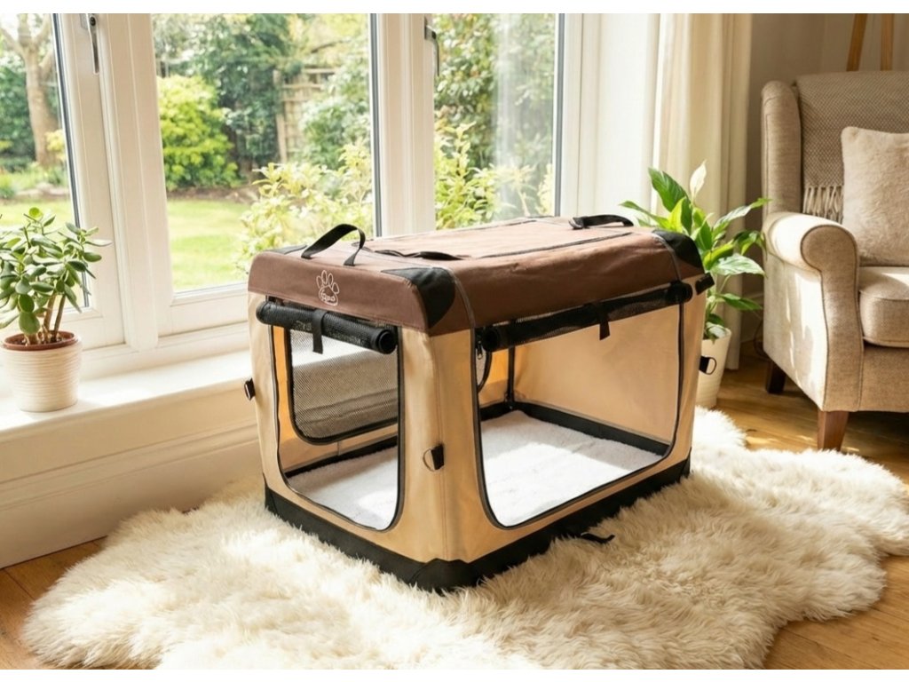 Vzdušná skladacia látková búda - prepravný box do auta alebo na domáce ležanie, pohodlie počas kynologických akcií, dovolenky atď.