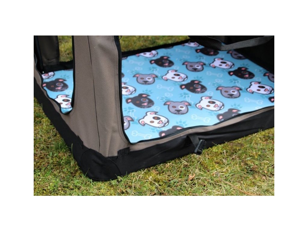 Veľmi praktický box - ideálny najmä na výstavy, dovolenky a najmä do auta na bezpečné a pohodlné cestovanie. Okrem toho chráni vozidlo pred blatom, psími chlpmi a slinami. Tento box nemá tašku na prenášanie.
