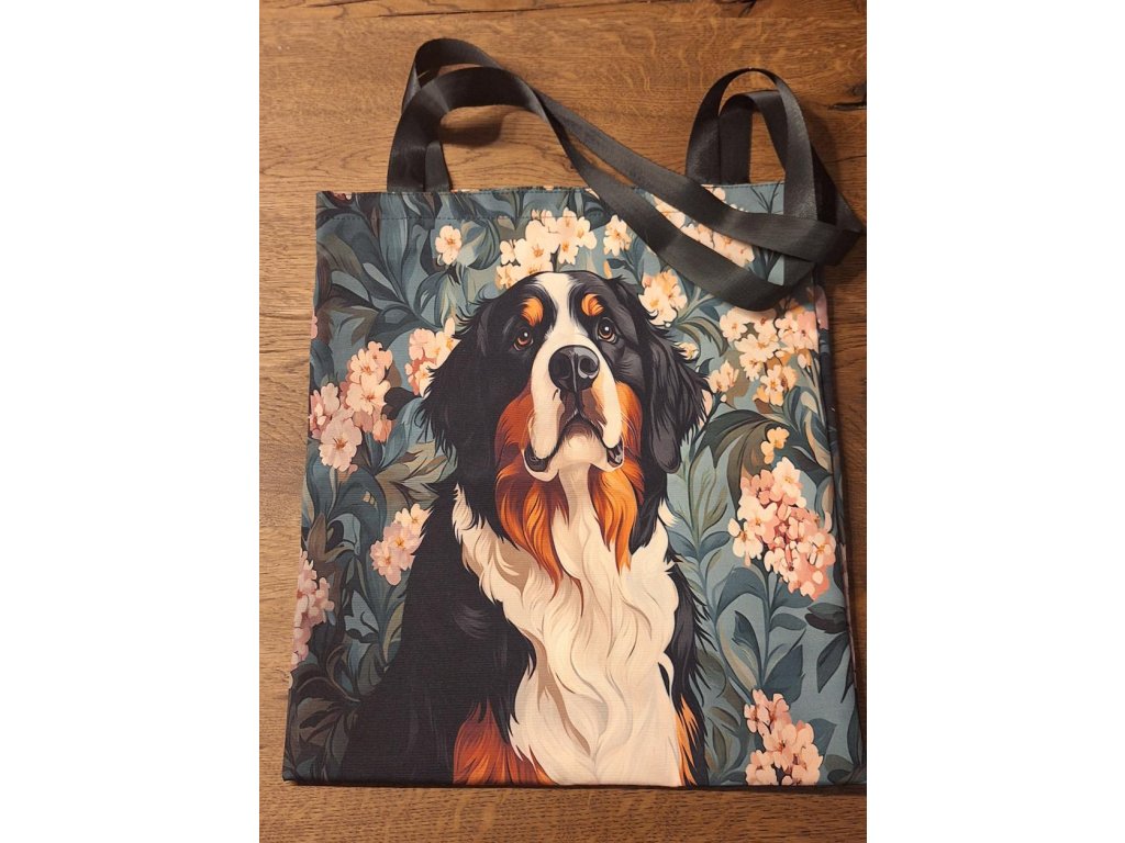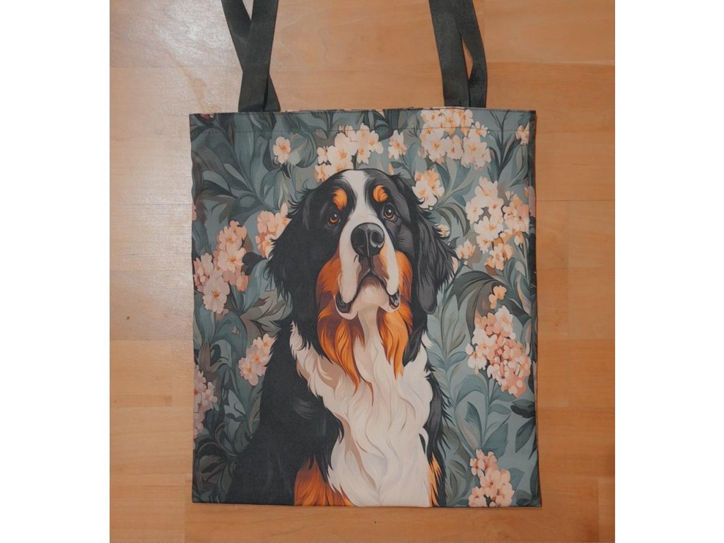 Textilná dizajnová nákupná taška cez rameno - motív Bernský salašnícky pes.