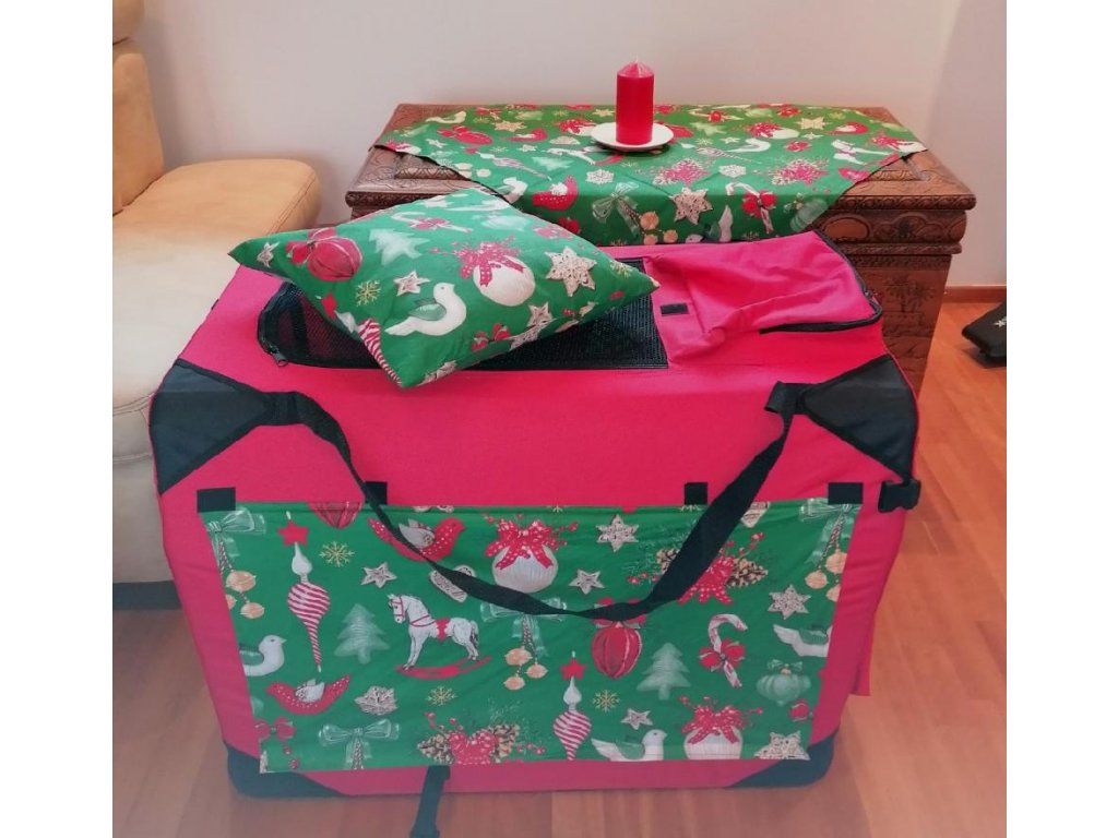 Náhradní obal na box s vánoční tématikou, vč. polštářku a ubrusu. Určeno do interiéru k vytvoření příjemné vánoční atmosféry.